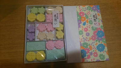 まめしゃんからもらったお土産の和三盆、入れ物可愛い!